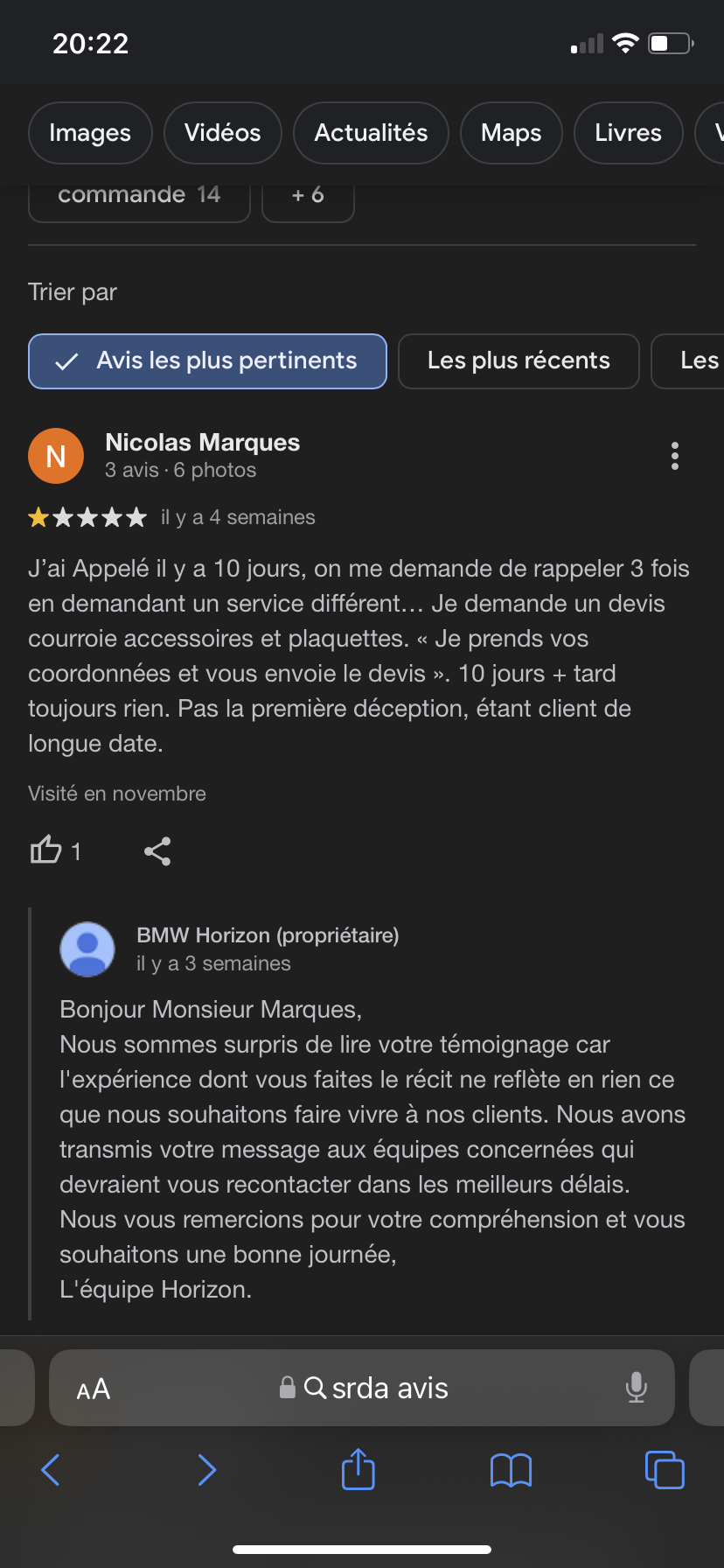 Après dix années comme client de SRDA, j’ai toujours été satisfait des prestations et du SAV BMW. Je suis passé à la concurrence (de l’autre côté…), j’ai hâte de reprendre une BMW et de retrouver le sérieux de cette concession À bientôt…
