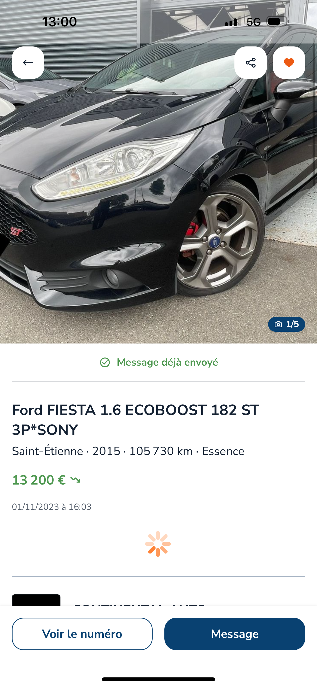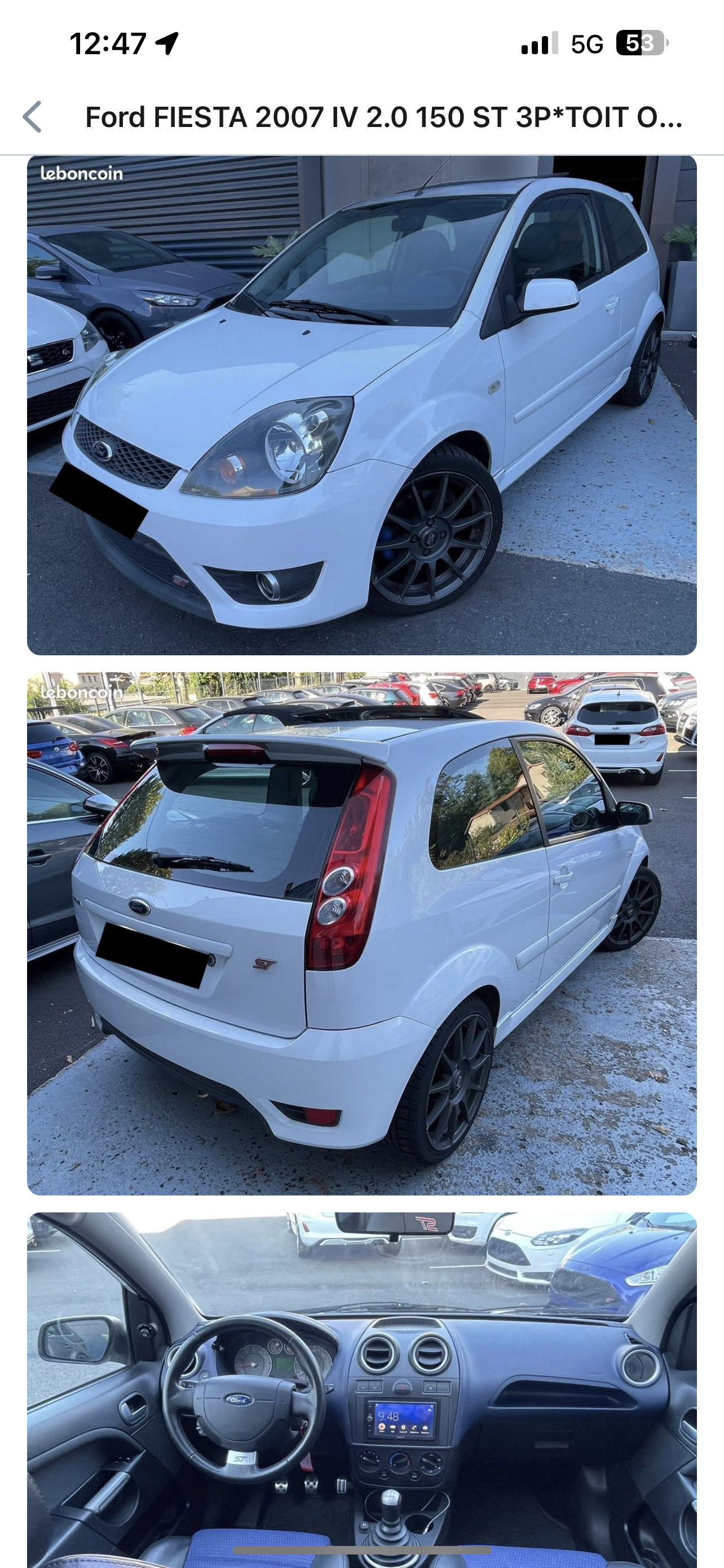 Attention !!! professionnel non qualifié qui ne sait pas ce qu’il vends… je devais acheter cette Ford Fiesta ST en photo qui d’apparence, était très propre mais… aucun rapport carvertical donc aucun suivis, aucune info. Au fil de la vérification, niveau d’huile moteur plus bas que le minimum de la rouille (énormément) présente sur toute la caisse étrier de frein complètement rouillé et il m’indique que la voiture passe au contrôle technique ça sent les embrouilles (accord ct avec la concession???) soyez vigilant sur tout les véhicules que vous achetez et aux vices cachés moi j’ai fais l’expérience 700km allé/retour pour rien et en plus il se permet de rigoler et de faire des messes basses avec son collaborateur.