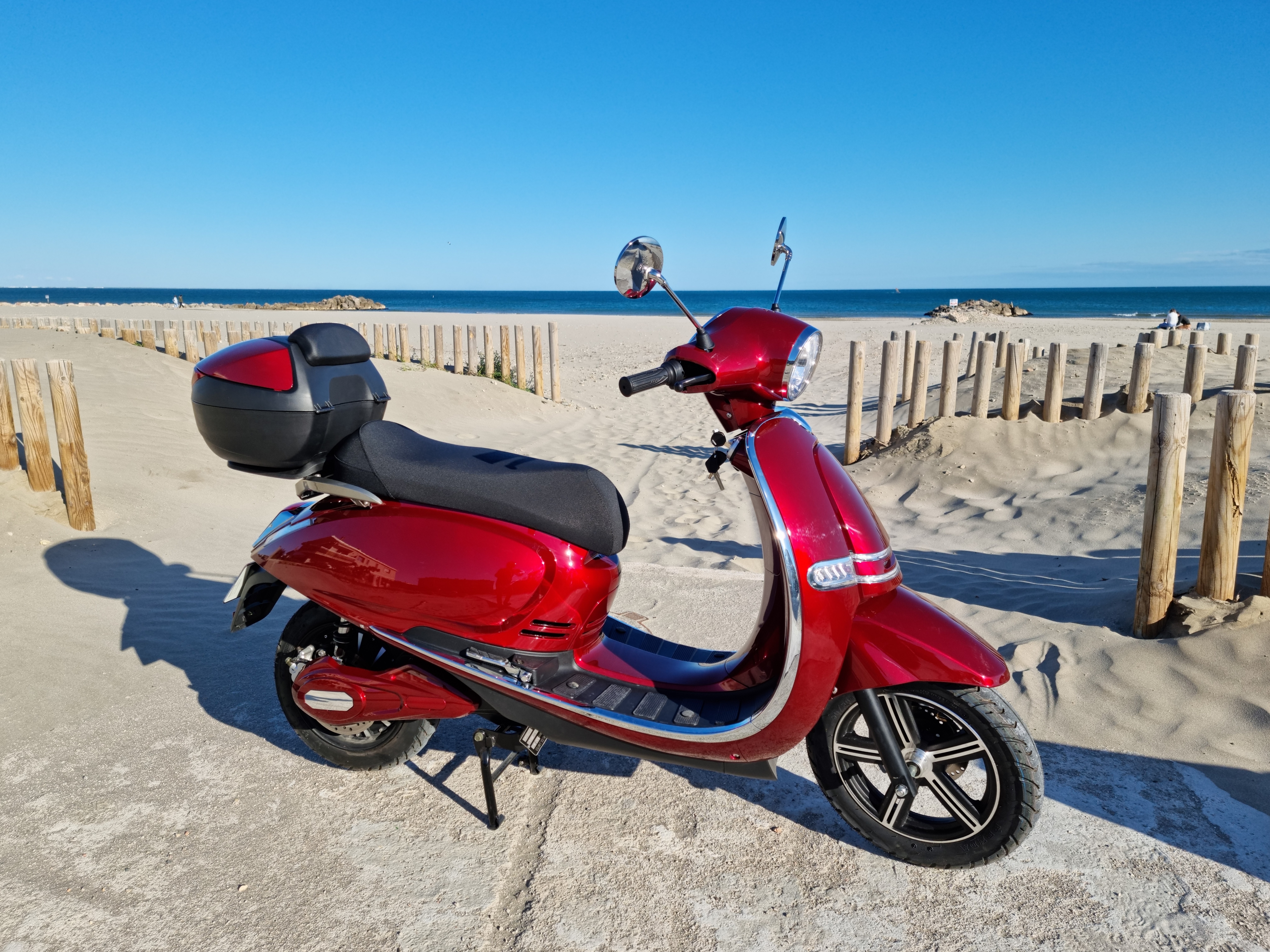 Je viens d'acquérir un 125 T5000w. Première sortie aujourd'hui, je suis satisfait du scooter qui répond à ce que j'en attend. Je suis également très satisfait du service et du professionnalisme de M Luc Doradoux. Livraison à Montpellier, carte grise reçue... efficacité et rapidité. Je recommande très chaleureusement cette adresse. 20/10/2021 : plus de 1000 km au compteur et tout va bien. C'est l'idéal pour se déplacer à Montpellier qui est une ville encombrée au niveau voitures. On gagne un temps fou à de jouer des bouchons. 2 remarques : l'utilisation de la puissance n'étant pas limitée, on a tendance à accélérer fort dès que nécessaire et l'autonomie s'en ressent. Et les rues de Montpellier étant également en assez mauvais état, le confort est un peu juste dans les trous et bosses et aussi sur longs parcours.