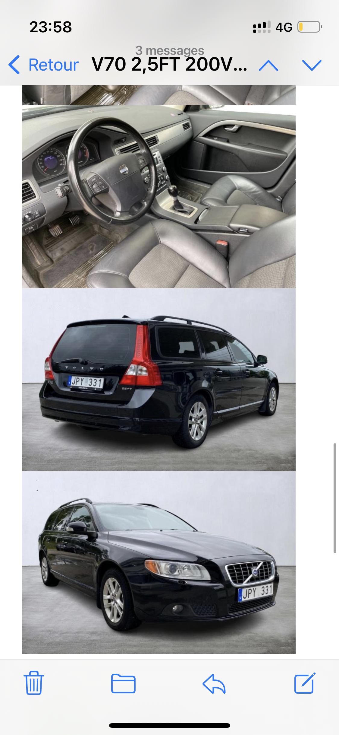 J'ai acheté une Volvo V70 2.5. L'état était comme promis ! Vendeur honnête et excellent service!