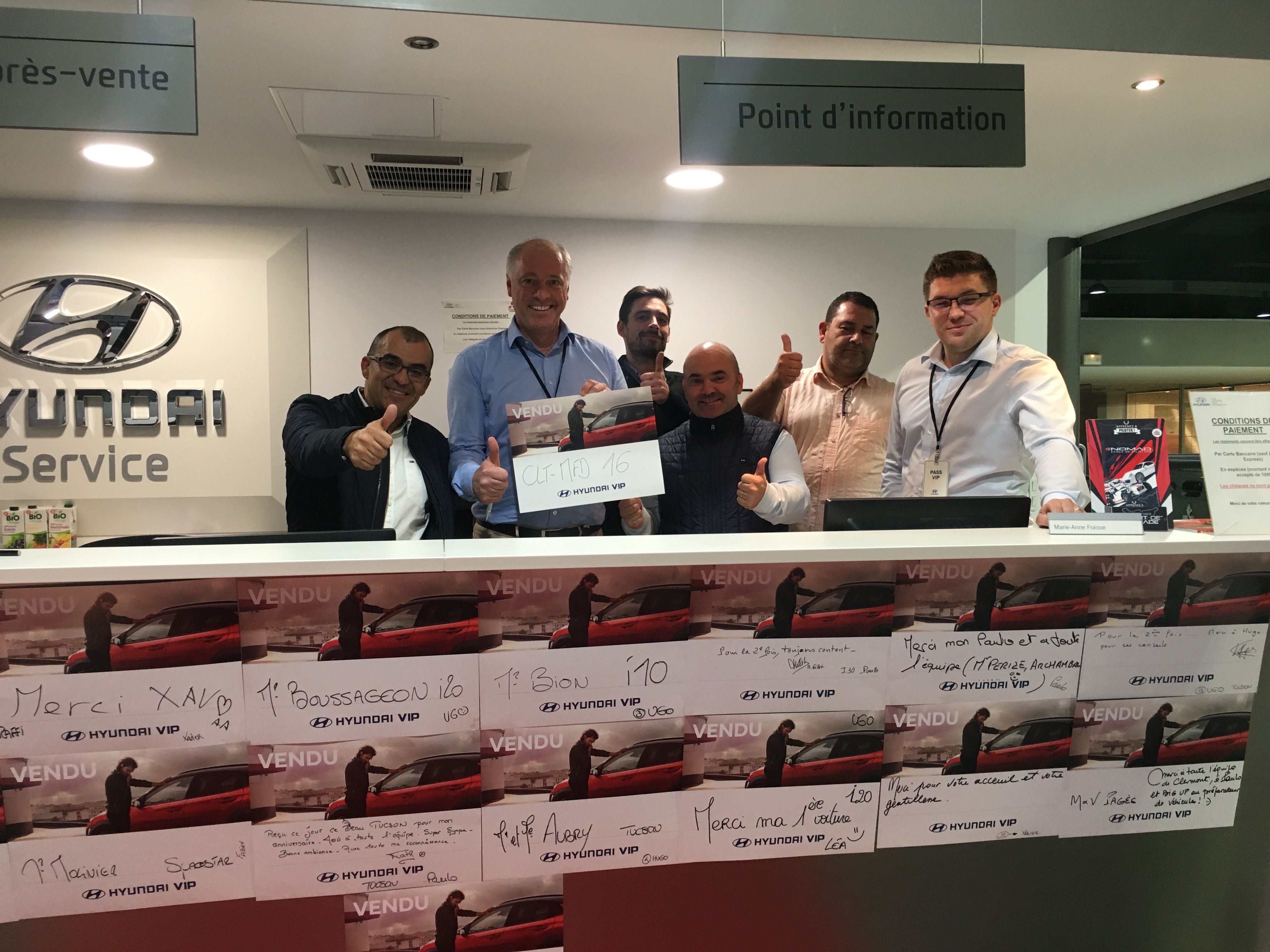Achat d’un véhicule d’occasion dans cette concession (que nous connaissons depuis longtemps). Jusqu’a la vente, RAS mais alors après… aucune communication entre les services, difficilement joignable. 3 semaines après la fin de la garantie d’1an, voyant moteur (vanne EGR HS). 3mois écoulés entre le 1er appel et l’intervention (1000€ de facture, 150€ de prise en charge de la part de hYundai et Auto 16...) 6mois après rebelote, cette fois c’est un tuyau de recyclage des gaz d’échappement (lien avec vanne EGR…) 400€ à nouveau. « Heureusement » que l’on a privilégié cette concession pour acheter la marque hyundai, véhicule qui avait été acheté neuf et entretenu chez eux (argument de vente et donc d’achat). En 1an, c’est 1400€ de facture sur un véhicule a 10k. Nous l’aurions acheté dans un bouis-bouis sans nom cela n’aurait pas été pire.