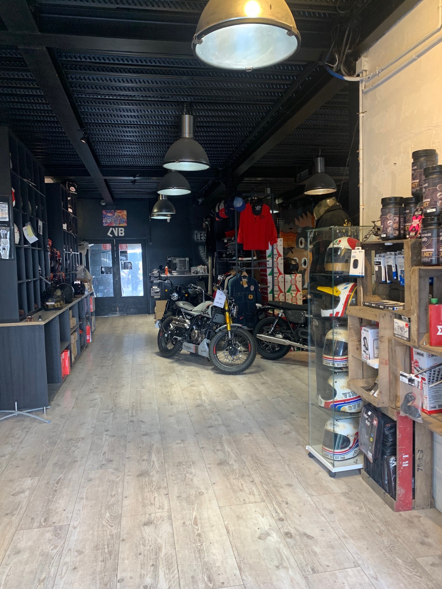 Accueil décontracté, showroom sympa avec un choix ciblé de motos (ils ne vendent que les modèles qu'ils aiment), idem pour les fringues dédiés, sans oublier la déco et les nombreuses occasions devant l'entrée. Je recommande Les Vieux Boulons 😜