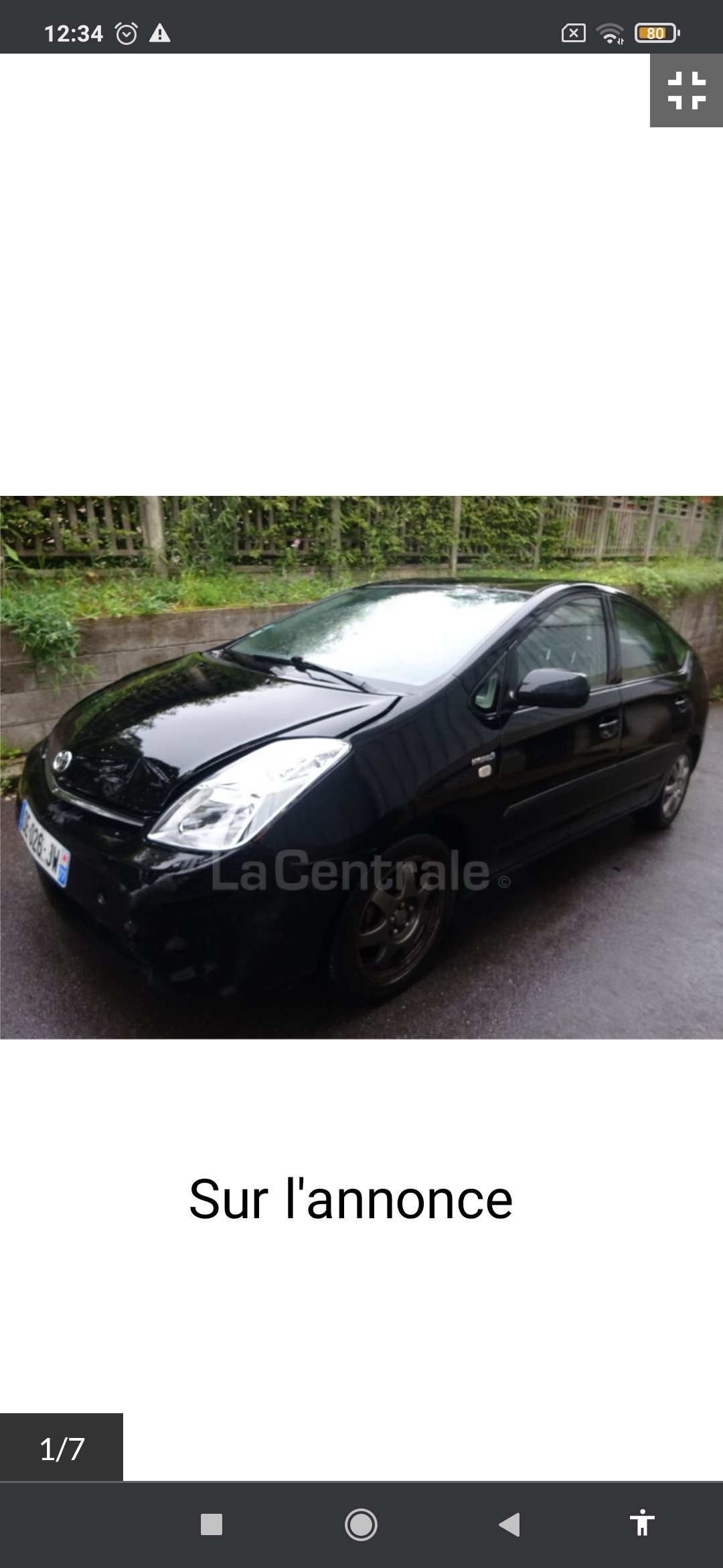 Nous avons été très contents à l'idée d'avoir la voiture qui est une Toyota Prius 2 noir sur la photo elle nous allait bien juste le capot à redresser. Mais en arrivant sur place nous avons été déçu, car il n'y avait pas que le capot mais aussi le pare choc avant enfoncé donc à changer, rayures sur les 2 côtés, pas de batterie (donc nous avons pas pu faire un éventuel essai), puis en rentrant dedans elle sentait la fumée de cigarette à plein nez et la photo de l'annonce a été prise exprès comme ci-dessous pour ne pas voir ces défauts. Le prix de base était de 2490€ et à cause du capot nous l'avons descendu jusqu'à 2000€ mais vu tous les frais à faire elle vaut moins que ça. Tout cela n'a pas été précisé dans l'annonce et en plus nous sommes déplacés exprès pour venir la chercher
