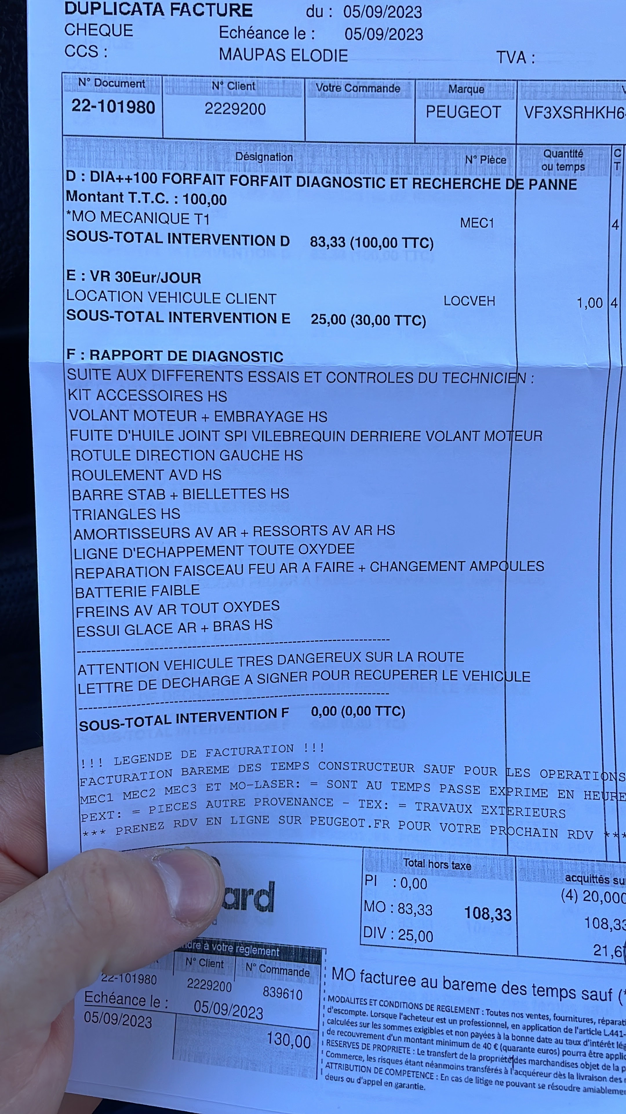 Déposer un expert pour une expertise d’un bruit au final tu te retrouve avec un devis à plus de 11500€ pour un expert de 2008. Une honte et des pièces facturer alors qu’elles sont encore en bon état juste légèrement rouillé ! Aucune gêne à présenter un devis pareil. Des vrai escrocs