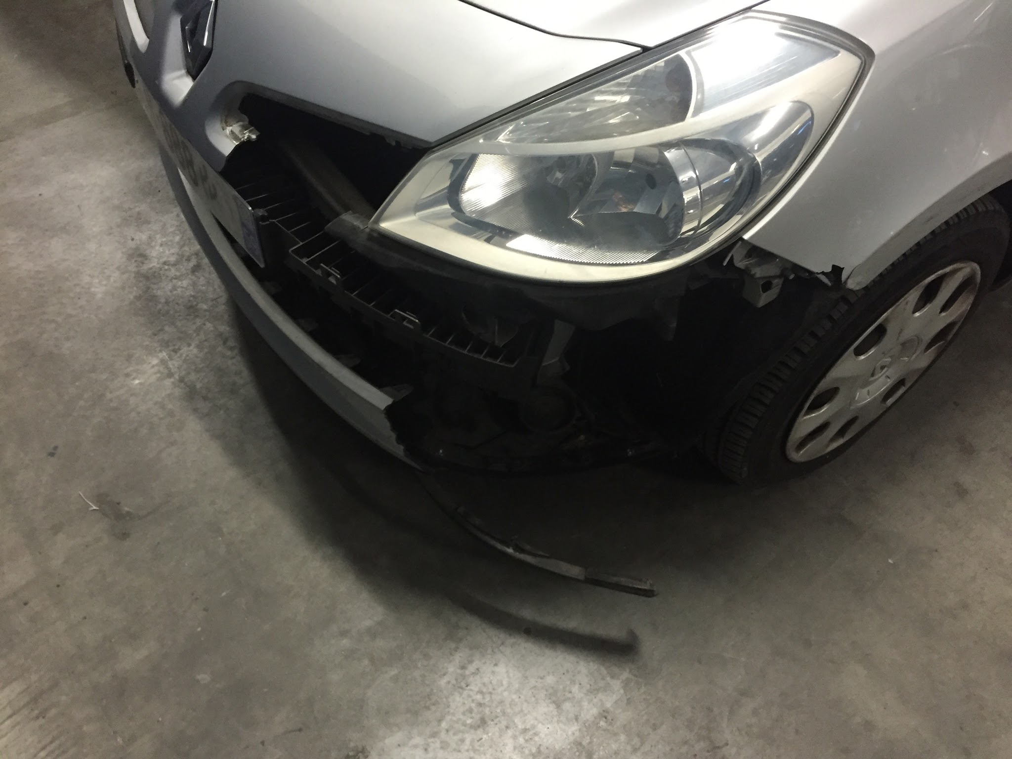 Véhicule pris en charge par le garage pour une expertise (pare-choc fendu mais parfaitement maintenu, plaque d'immatriculation cassée, aile rayée). Suite au rapport de l'expert je décide de ne pas effectuer les travaux à l'exception de la remise en état de la plaque d'immatriculation. Je règle donc la facture (20€), le carrossier m'avance fièrement le véhicule avec sa nouvelle plaque mais sans le pare-choc (non ce n'est pas une blague, photo en pj)... Garage Nullissime, du jamais vu : manager en carton qui n'assume pas ses responsabilités et préfère envoyer au front son staff de l'accueil, véhicule de prêt en mauvaise état, pièces démontées déposées sur le siège passager sans protection, nouveau pare-choc abimé...
