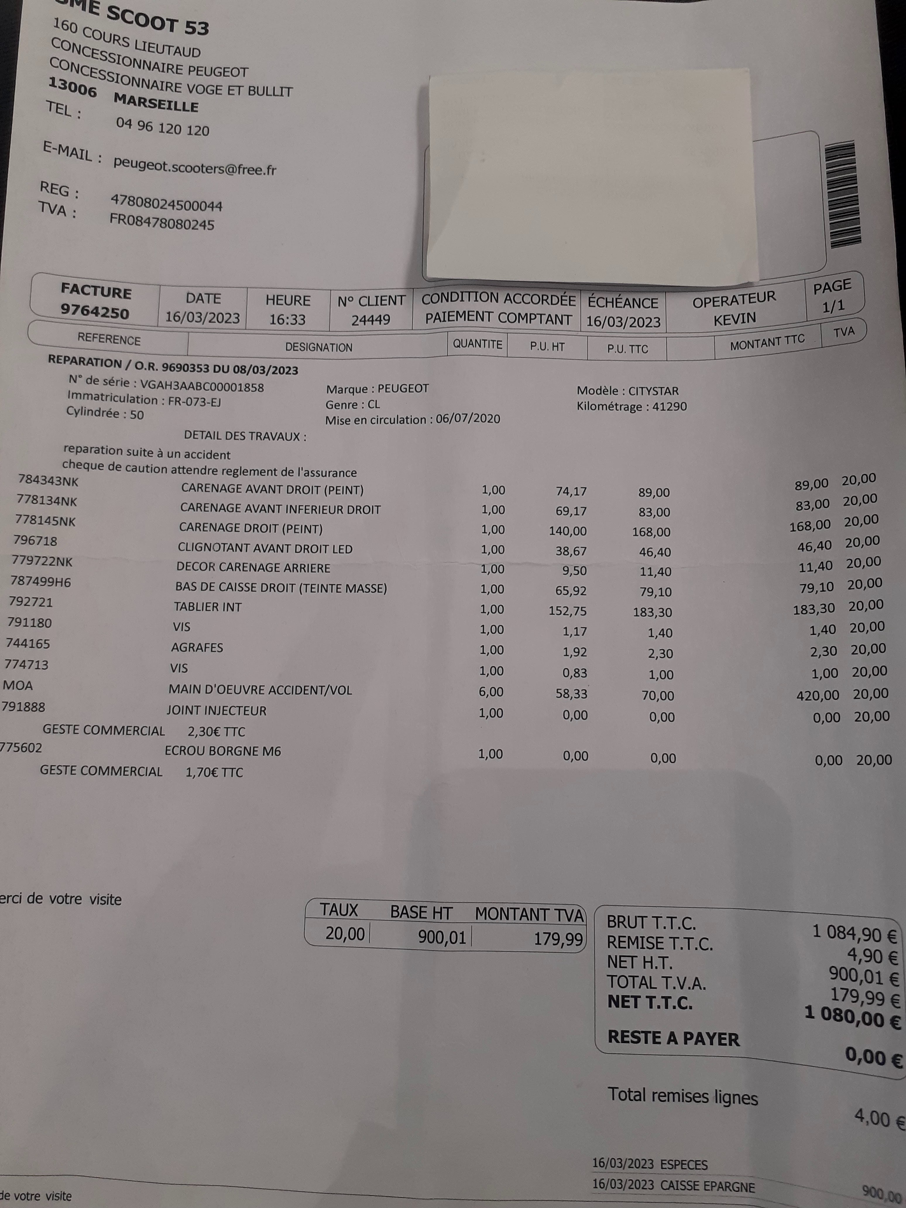 Je fréquente essentiellement le garage pour y faire réparer mon scooter et j’ai toujours été bien accueilli au téléphone comme au comptoir.