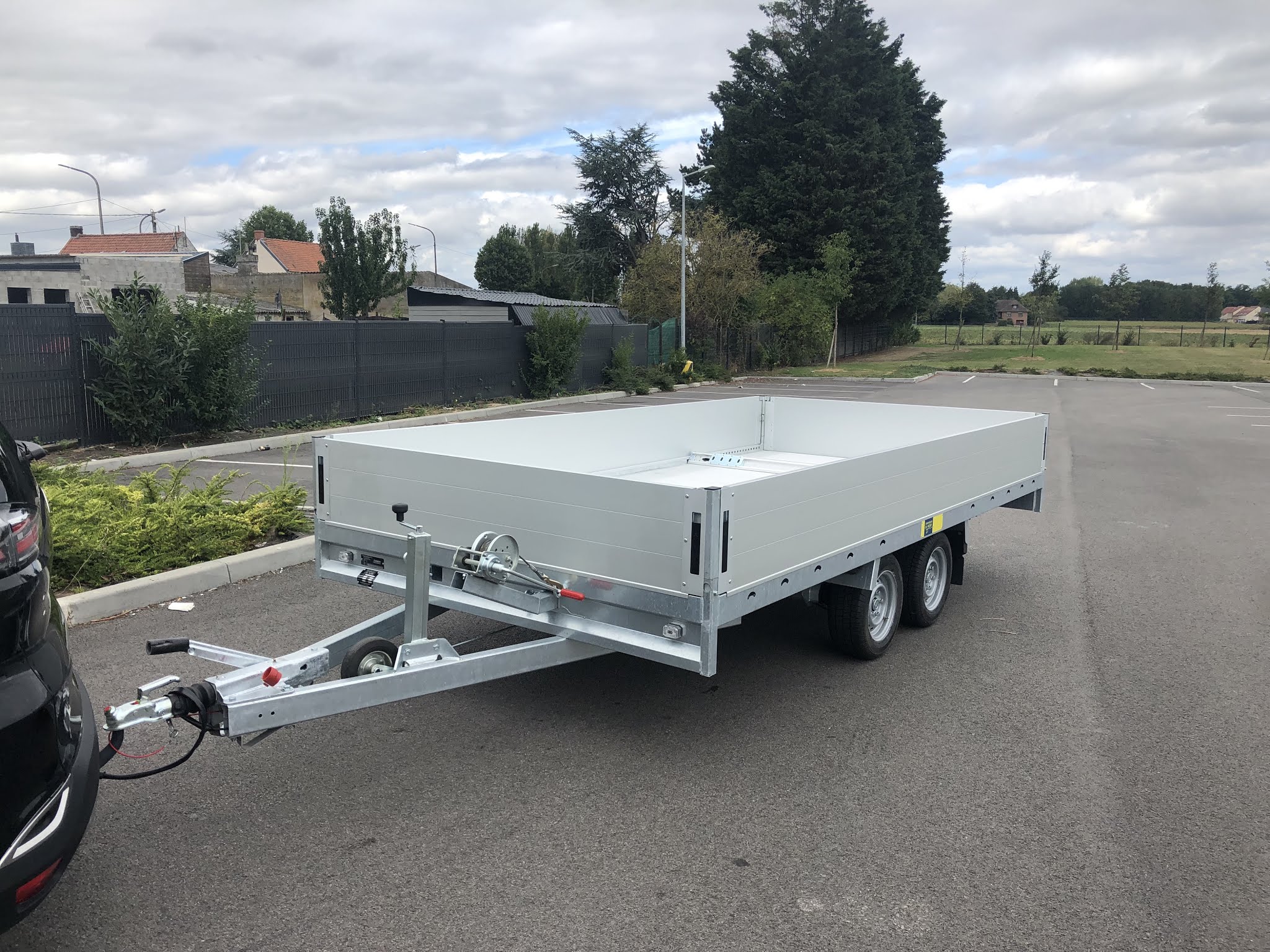 Dessus de cette societe achat d une remorque double essieu a 1050e montage de la selecte d attelage a la cle a choc resultat tube carre de la remorque ecrase les double essieu pas aligné j ai du le faire chez moi vise du loker de verouillage de la ridel casse porte echele retire vu j en ai pas inutilité j ai du reclamer 10 foi pour avoir des cache pour les trous J explique que j ai oublie la plaque d immatriculations pour la remorque on me propose meme pas de m en faire une neuve je n ete pas a 7e pret Je demande La bache de protection on me repond prener une bache bricot depot pour le bois c est le meme ok je me demerde en gro Que dire de remorque du nord apres on s etone que les gend vont en belgique acheter leur matériel