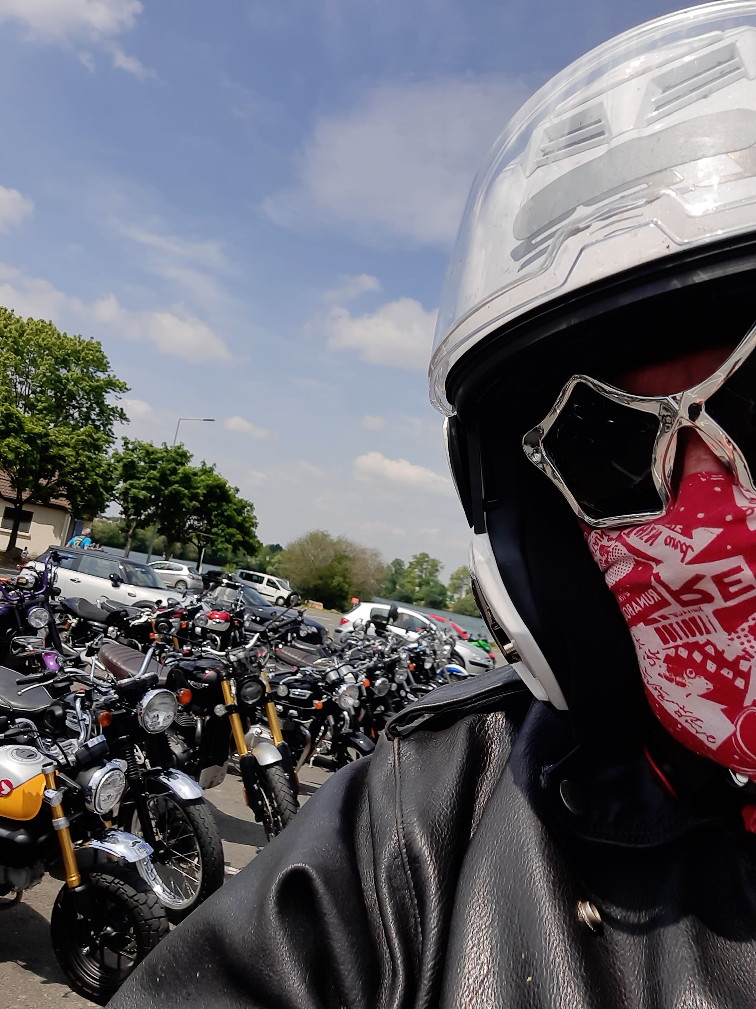 From the Bad Boy... Le dimanche 22 mai dernier a eu lieu Le Distinguished Gentleman's Ride, journée de roulage dont le but est de mettre en avant une démarche caritative, celle de récupérer des fonds pour la recherche sur les maladies développés des hommes de 50 ans et plus... Censé tourner autour du néorétro distingué pour les motos et rouleurs, je suis arrivé avzc ma Tiger 800 en blouson noir, foulard sur le visage et lunettes argentées en étoile. Un grain bad boy... Et j'ai été accueilli merveilleusement par une équipe aimable et au sens de l'humour affûté. Merci pour ces rencontres et cette magnifique balade parmi vous. The Bad Boy.